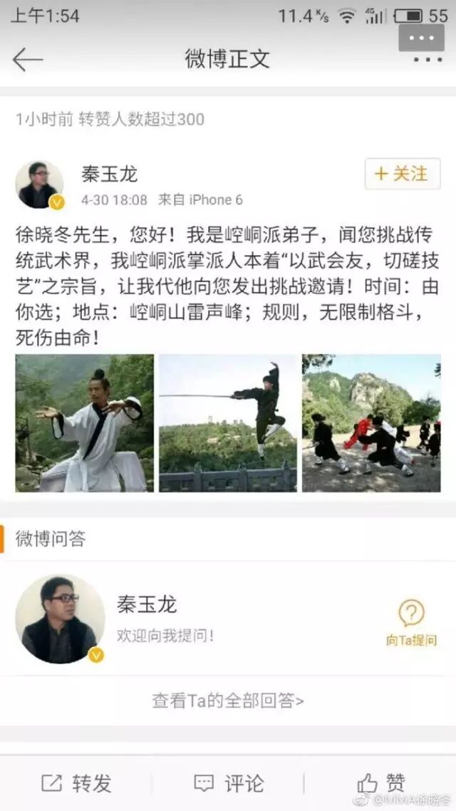 士可杀,不可辱!于是,中原各大武林门派以及传统武术高手纷纷挺身而出,公开声明挑战徐晓冬。