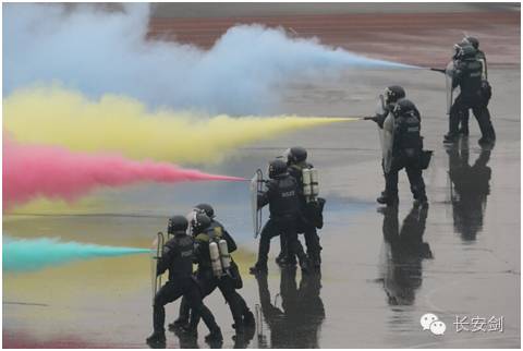 骚暴乱事件如何处理?首先战术战法要得当:道路封控、震慑拦阻、穿插分割、出击抓捕、攻击防护,驱散追击……各种战法运用自如;其次,装备也要上档次:特警队员利用水炮对骚暴乱人群实施强行驱散,他们使用的防毒面具,则对眼睛、面部皮肤及呼吸器官提供有效保护。