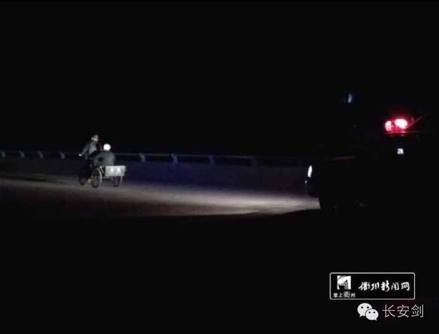 于是,郑士龙驾着警车以不到10码的车速小心跟在三轮车后,而警车的两束橘黄色车灯也照亮了老人前行的路。“大约跟着送了500米左右,到了柯山大桥的位置,他们将车停了下来。可能是累了吧,两人就坐在一起休息了。”郑士龙下车询问情况,“知道他们前往的方位后,我们便把两位老人接到了车上。”郑士龙开警车送老人,杨军则骑上了三轮车。