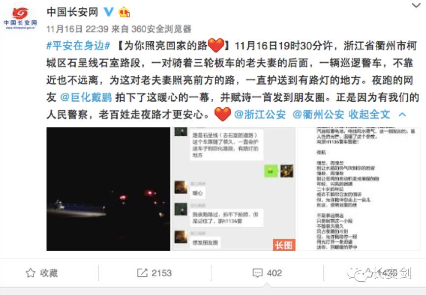 当照片被中国长安网官方微博转发后,网友们都被这个温暖的小故事感动了。