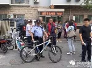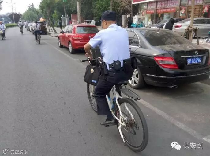 我今天跟民警老张下社区去了。一天的工作开始,老张带齐装备,请出了他的“老伙计”——一辆自行车。