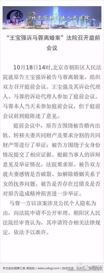 长安君曾在以前的文章中说过,王宝强“离婚声明”里“依法处理”一节,是值得肯定的。同样,在电影发布会上他那句“我的婚姻交给法律处理,相信法律会公平公正”,也说得毫无问题。既然已对簿公堂,还是让法律的归法律吧。长安君相信,法律在如潮的公众舆论前,会保持公正清明。