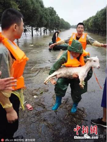 民警在完成救人任务后,重返现场,帮大妈带回了羊