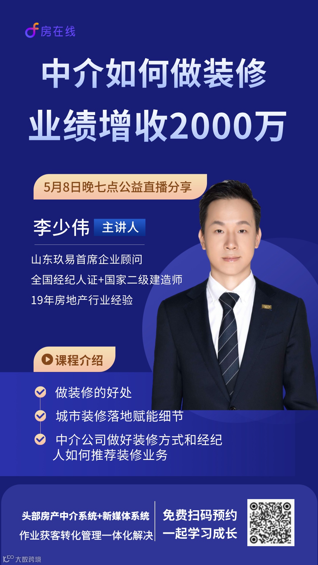 房在线公益课|中介如何做好装修?增收2000万!限时免费看直播 房在线