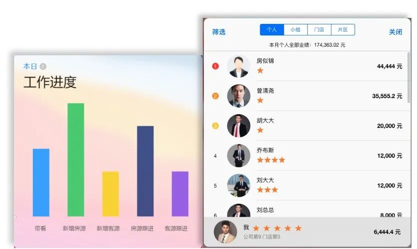业绩排行是作用于荣誉机制下的,利用荣誉机制来牵引,营造PK氛围,让经纪人、门店、小组、门店、片区之间相互进行业绩方面的PK,营造比学赶超、不甘落后的团队氛围,从而调动经纪人工作积极性。