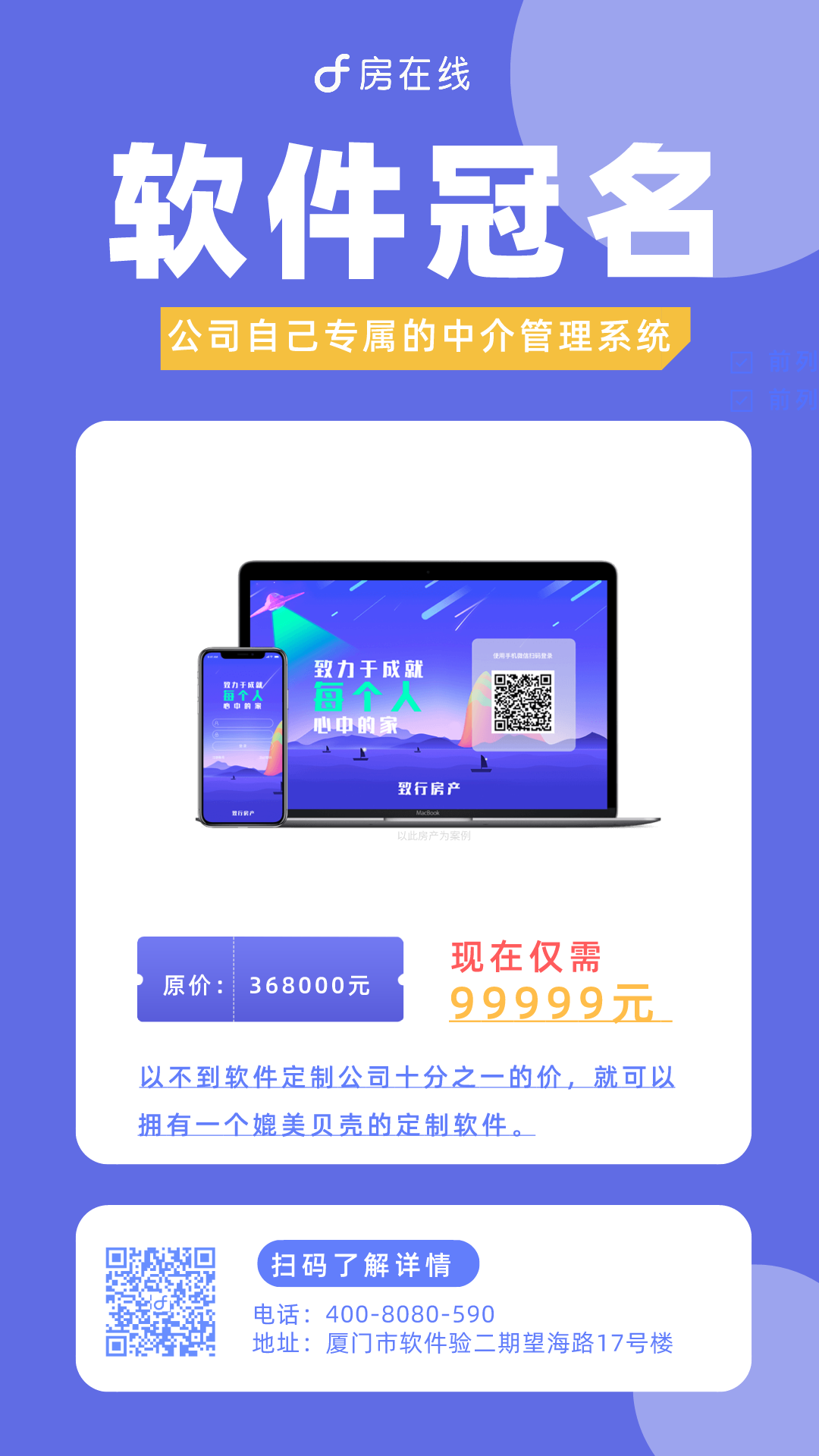 而选择房在线的软件冠名定制,你的公司就能以不到软件定制公司十分之一的价格,获得一个房产中介管理软件。