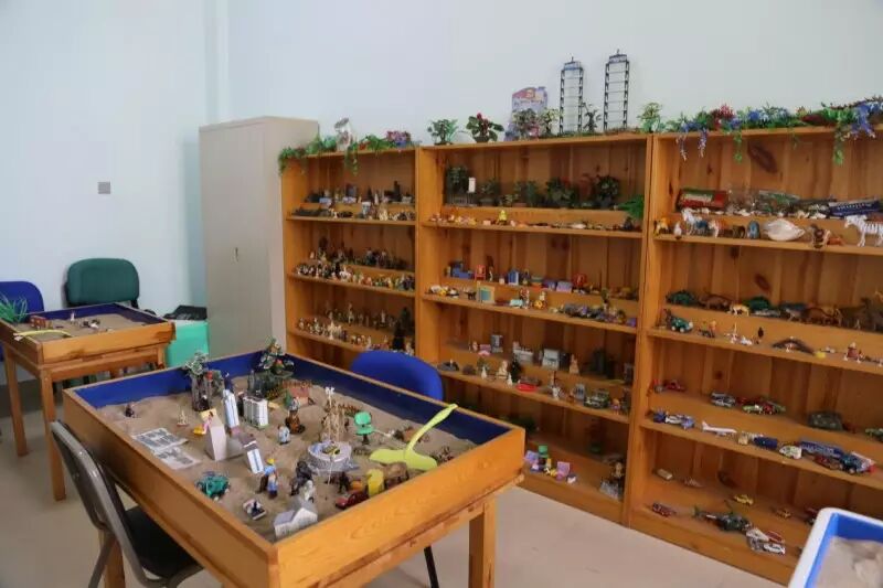 这是沙盘治疗室(实在是......很意外的画风)。据专门负责心理疏导的狱警蜀黍介绍,这种沙盘疗法外籍服刑人员使用得比较多。根据弗洛伊德和荣格的心理学理论,让服刑人员自由摆放沙盘,通过其作品来观察其心理状态、了解心理问题,制定疗愈方案——