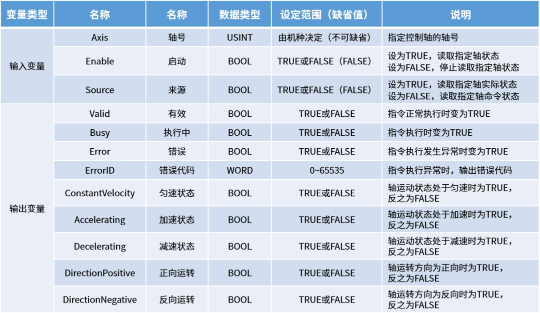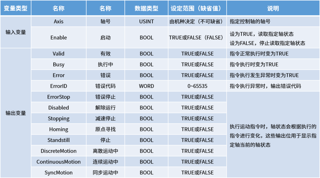①ConstantVelocity(匀速状态)、Acceleration(加速状态)、Deceleration(减速状态)为控制器通过轴命令速度和命令加速度判断,轴在运行状态下才可以判断,轴没有进入运行状态时,无法判断。