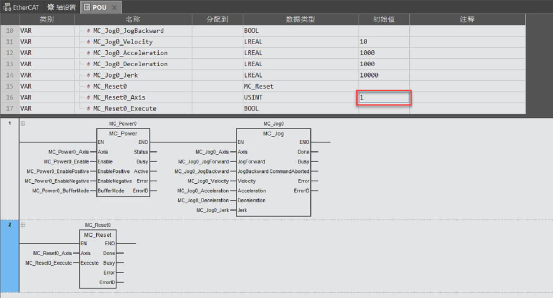 【说明】当轴有报错时,可以通过MC_Reset指令进行复位。