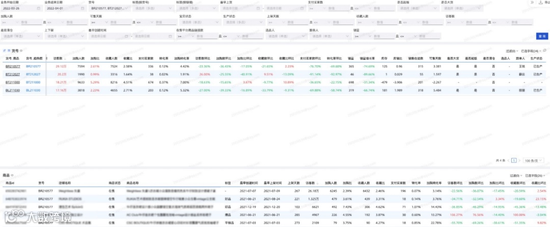 这是整个商品的运营全生命周期报表,也叫商品万能表,客户通过这张表可以透视每一个商品从前端的流量投放的效果,到中期转化效果,以及供应链是否给你生产、备货,包括什么时候可以入库、什么时候到系统的整个过程。对于商家来说,数智化是很重要的抓手,很多老板觉得数智化可以帮助到它,但是没有一个好的抓手,这个商品万能表是让老板透视从前到后整个商品的数据表现以及供应链的表现。
