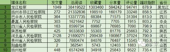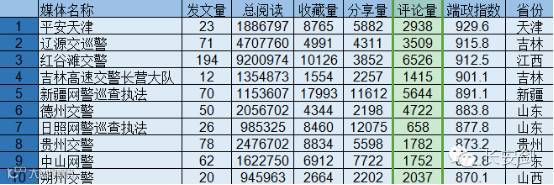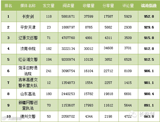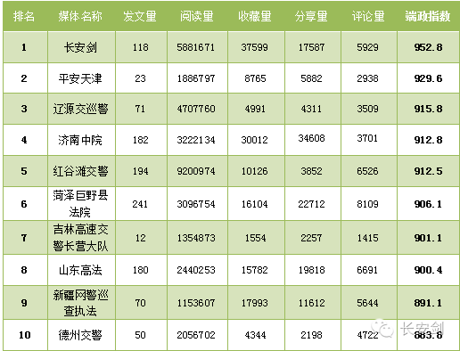 (具体头条号运营数据请参照政法系统总体榜单,以端政指数为序)