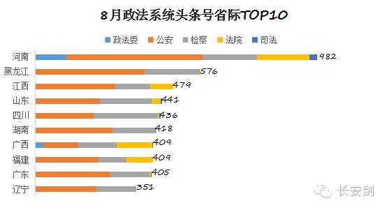 本报告统计了政法系统内政法委、公安、法院、检察院、司法5大系统头条号8月数据。