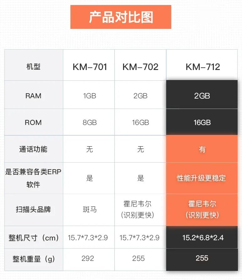 快麦的2款PDA702和712,均采用霍尼韦尔扫描头,能快速的识别一维、二维码。对于一些残缺不全的二维码,也能稳定的识别,快速帮助库存盘点 /查找商品。