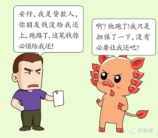 长安君(微信ID:changan-j):长安君一直很好奇安仔哪里来的那么多钱。小伙伴们看,他离婚也花钱,缴纳赔偿金也花钱,这下子给人当了负连带责任的保证人,又花了一大笔钱。就算家里是开印 钞厂的,也经不住这么折腾吧……什么什么?你们问什么是“连带责任”。好吧,安仔吃一次亏,长安君我就普一次法,咱们这次就来谈谈“担保”。