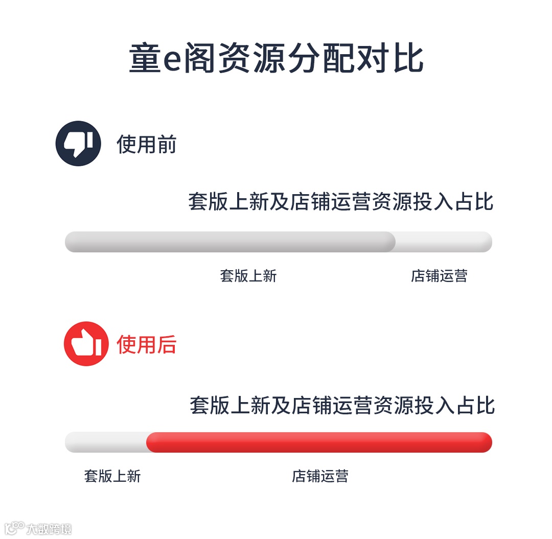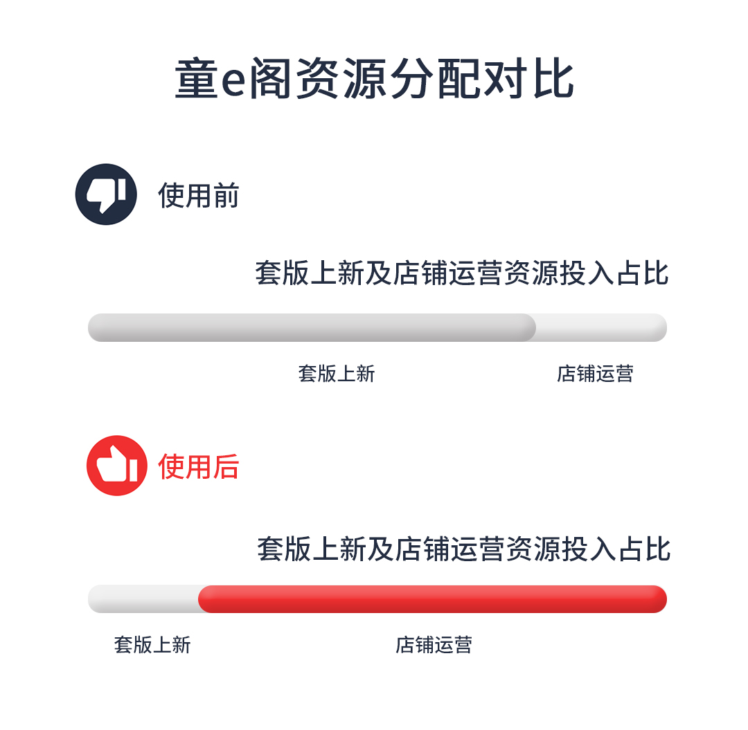 跟快麦详情机器人合作后,彻底解决了童e阁的机械化套版上新工作,大幅度提升了工作效率。使其可以将更多的资源投入到店铺运营中,实现店铺高效运营。