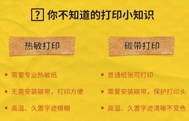 热敏打印:直接用热敏纸就可以打印,高温、久置容易模糊。快递面单用它就可以啦。