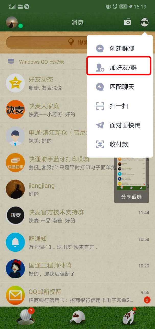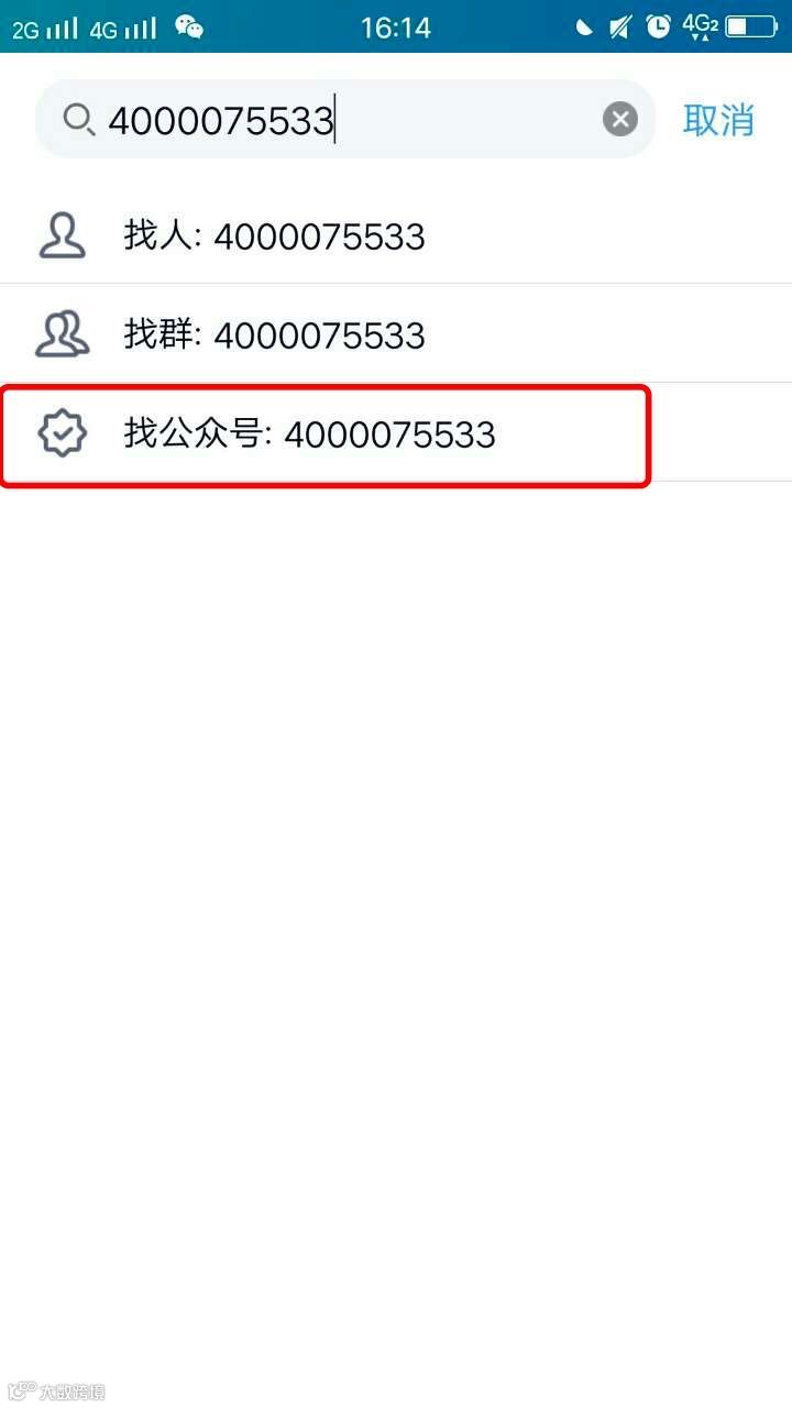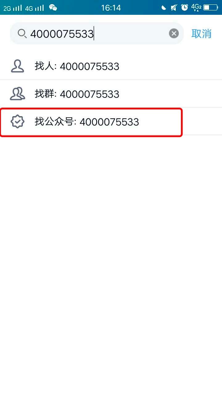 手机端:点击【加好友/群】,输入客服QQ搜素之后点击【找公众号】哦。