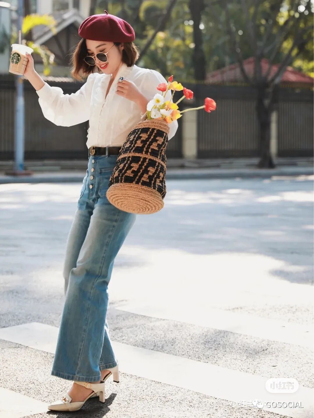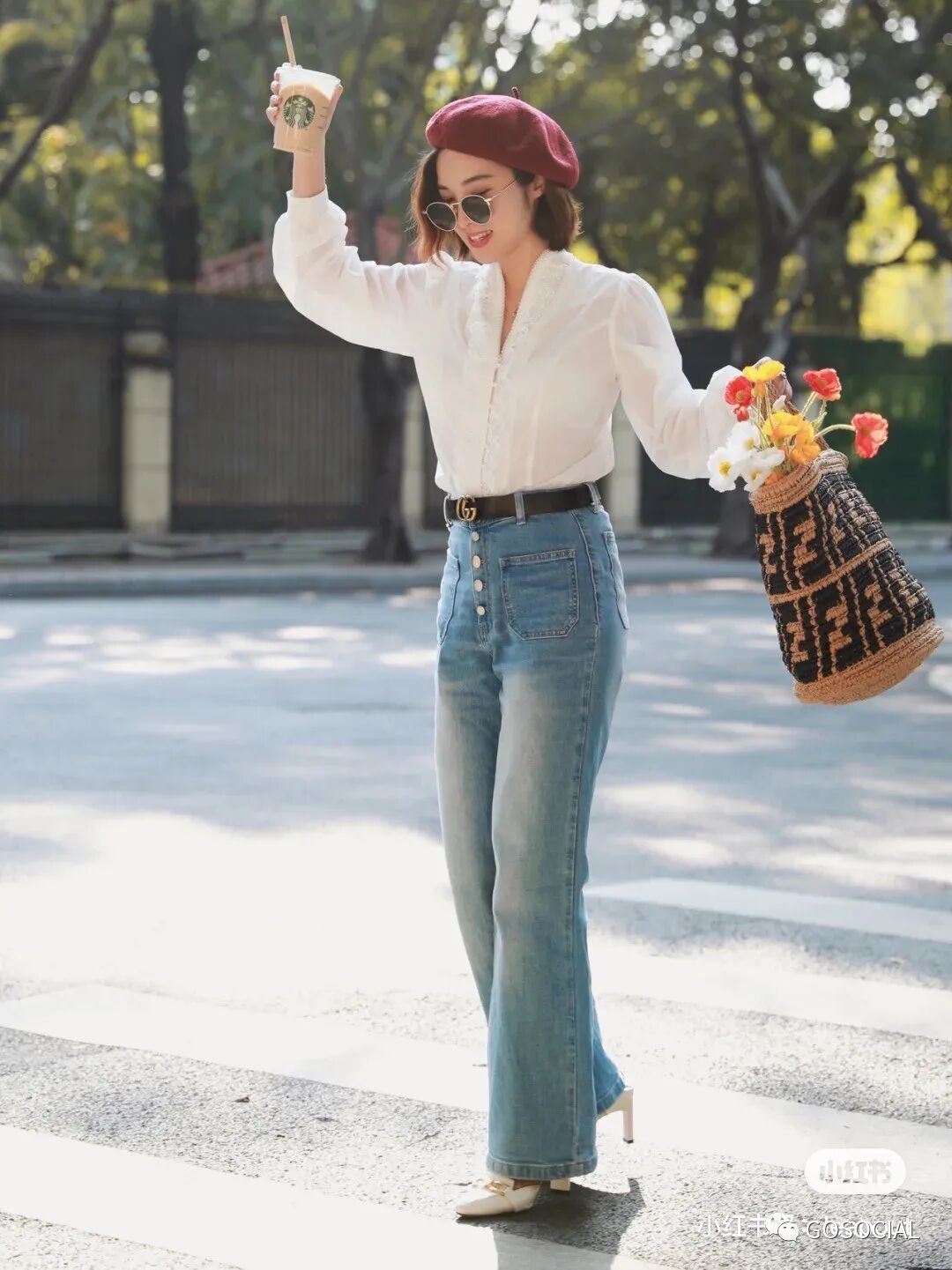 时尚博主kiki日常喜欢舒适自然的穿搭。她也总是给人悠然惬意的印象。