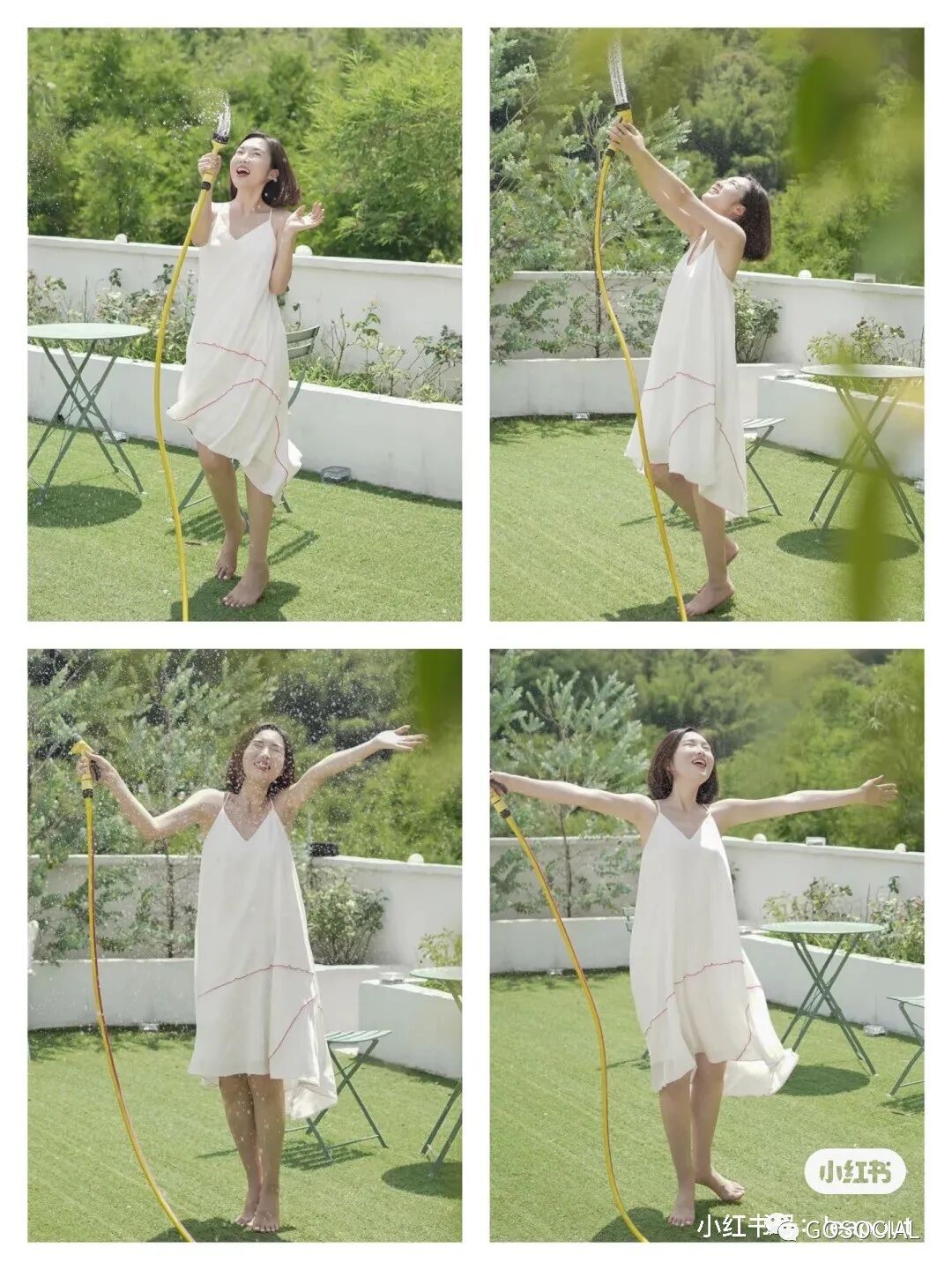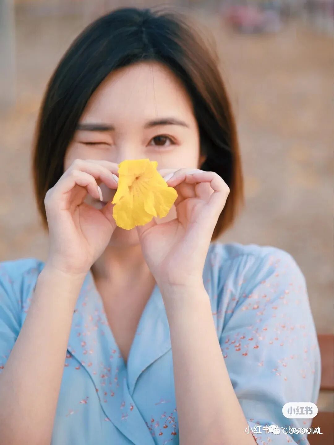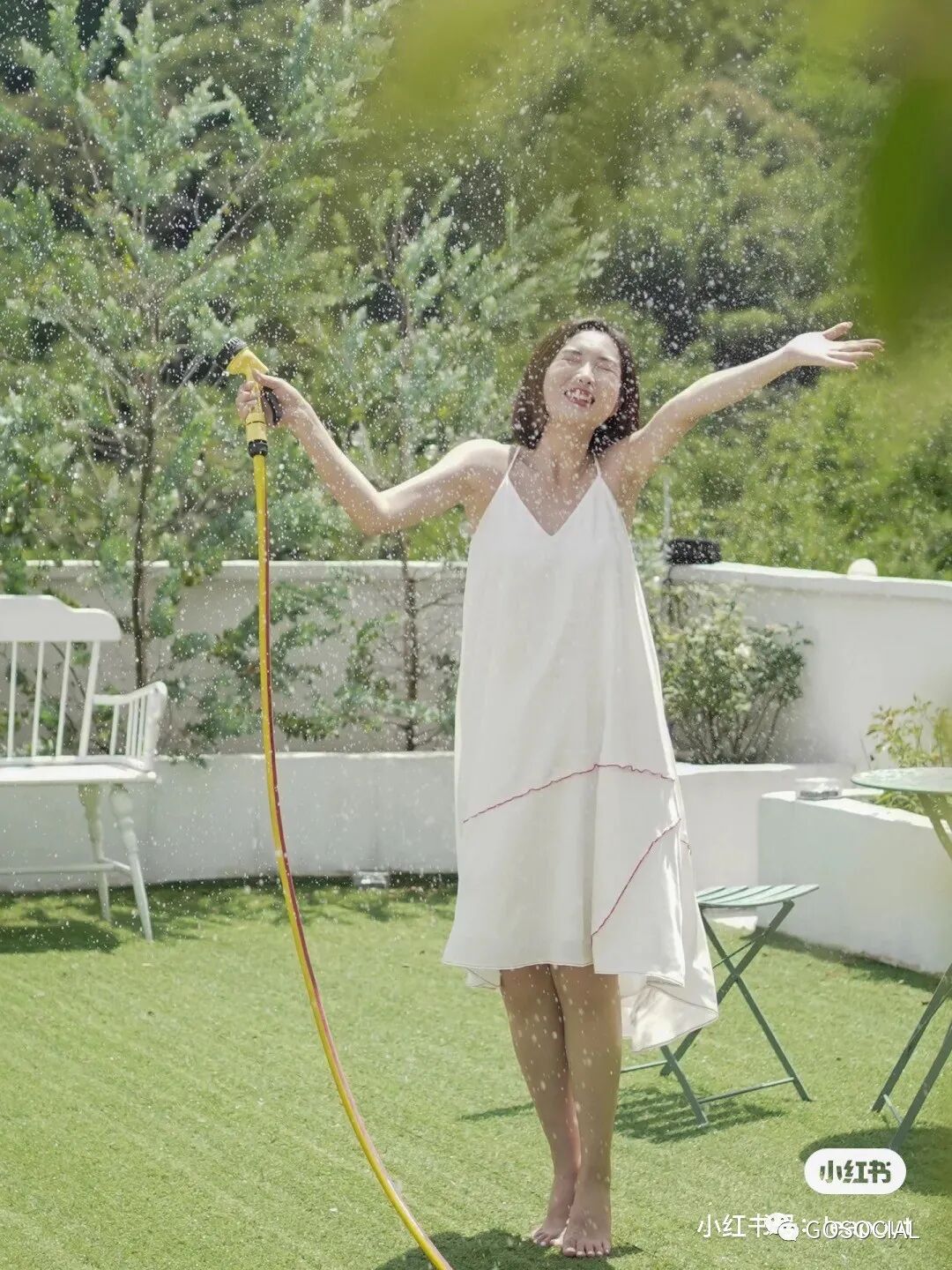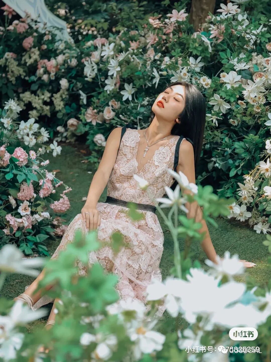 晨曦、微风、暖阳。时尚博主鸭心一袭v领镂空碎花长裙,金色项链缠绕于颈处,闪耀着迷人光芒,尽显优雅迷人气质。