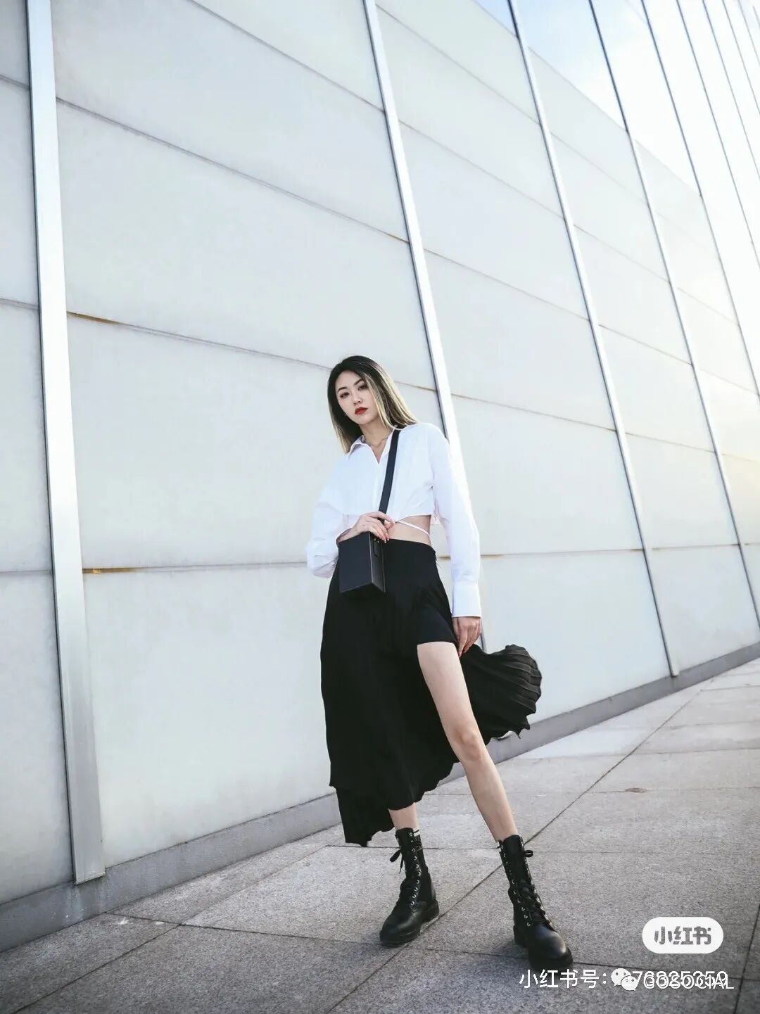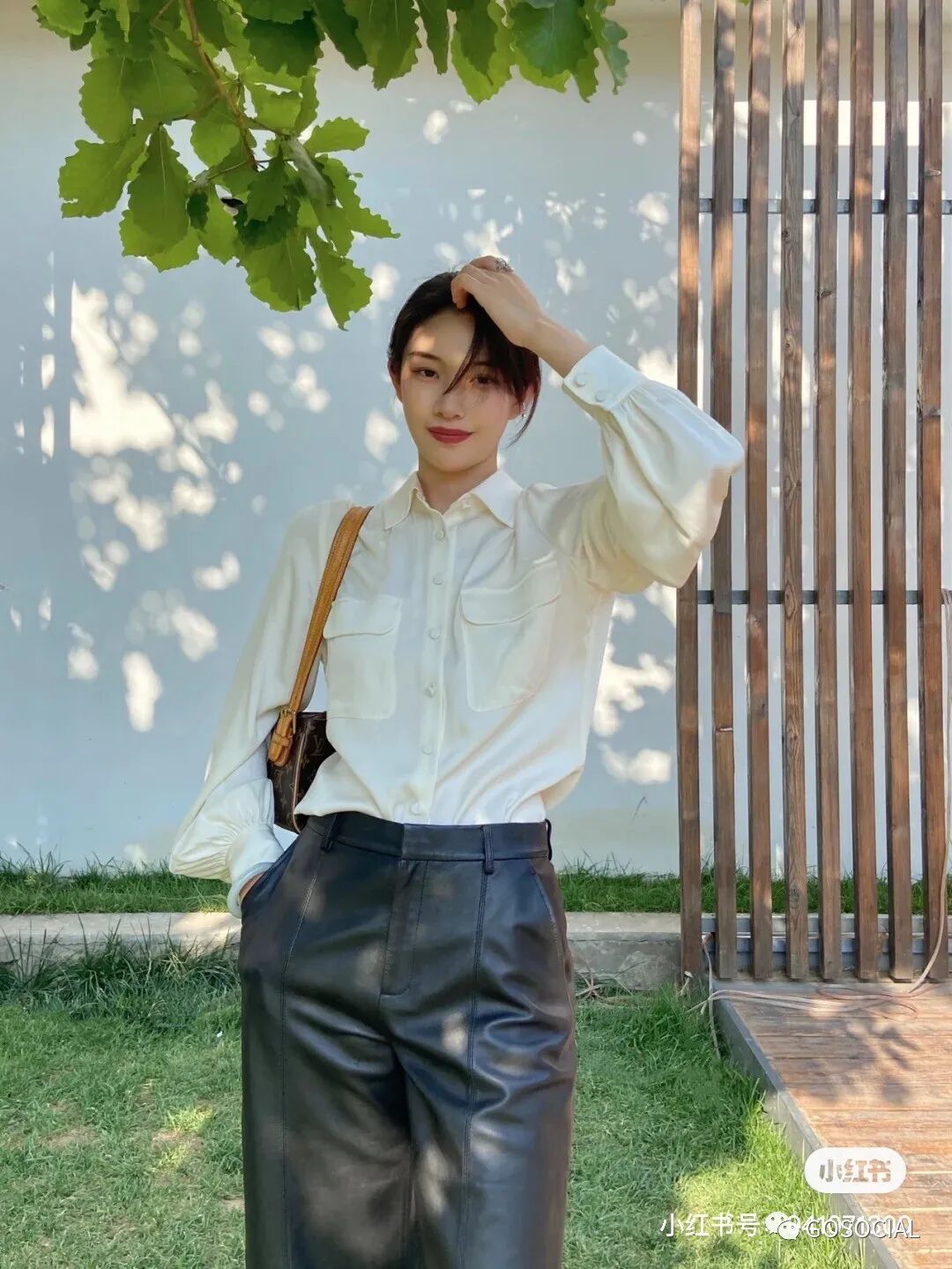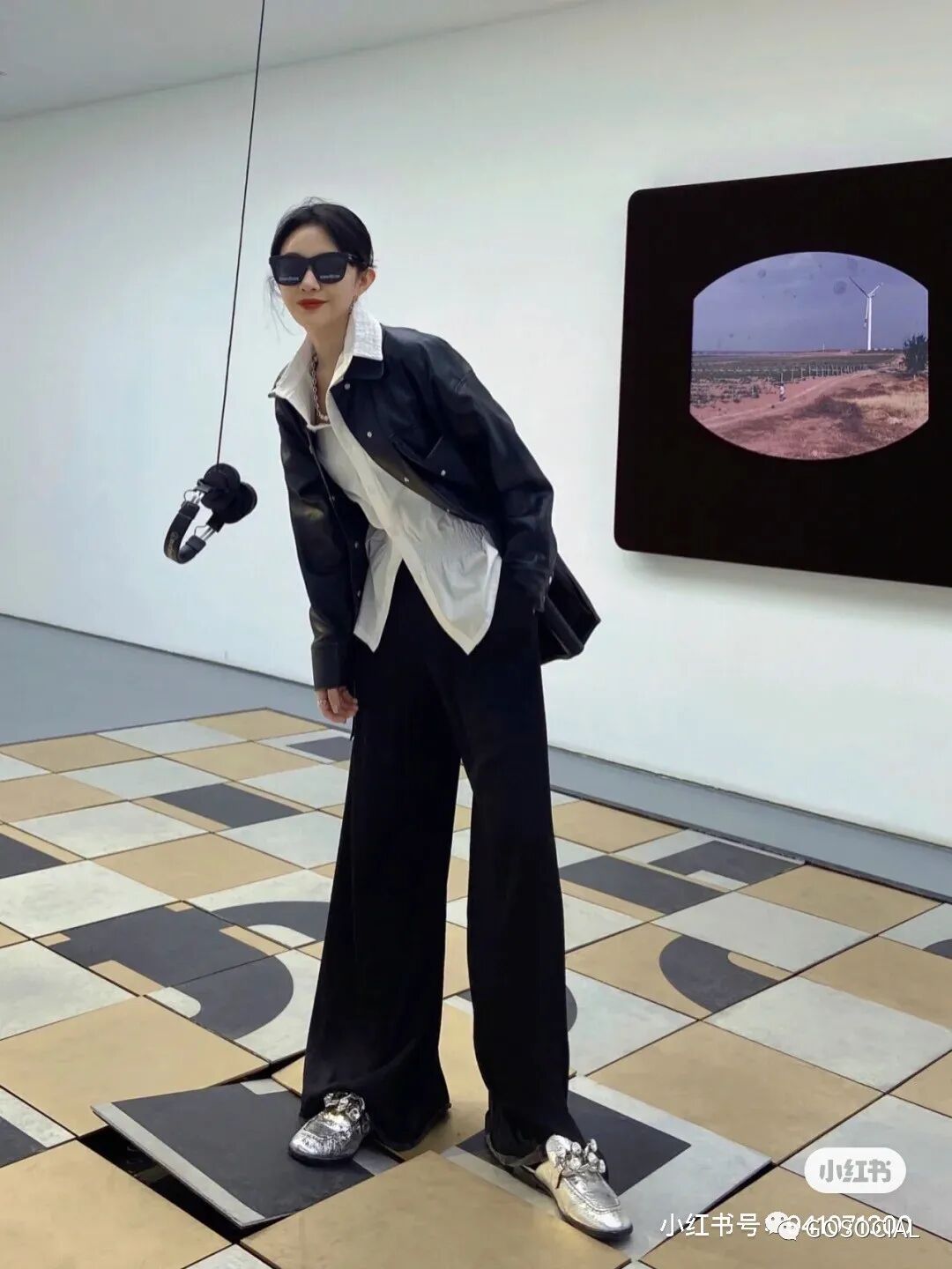 穿着舒适的白衬衫、风衣,搭配皮裤,这些基础单品被她搭配得干练而时髦。