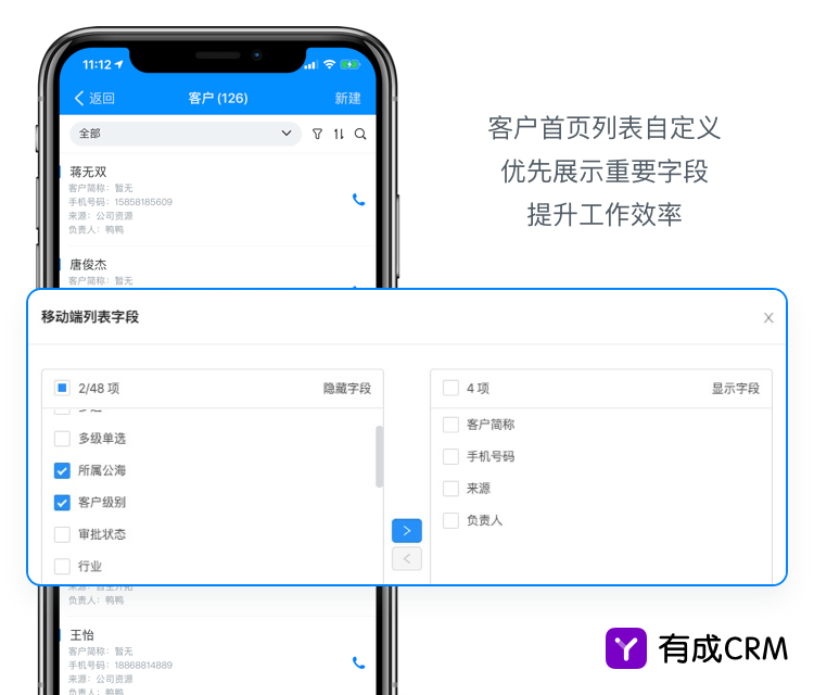 有成CRM支持自定义客户列表,首页展示什么字段都由你自己决定,刚才的情况下,你只需要把客户的【地址】字段放出来,配合上面提到的一键拨打,工作效率是不是又提升了不少?
