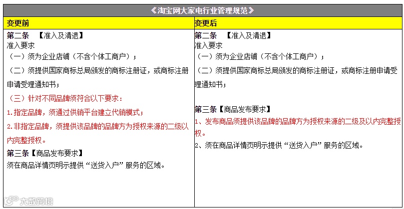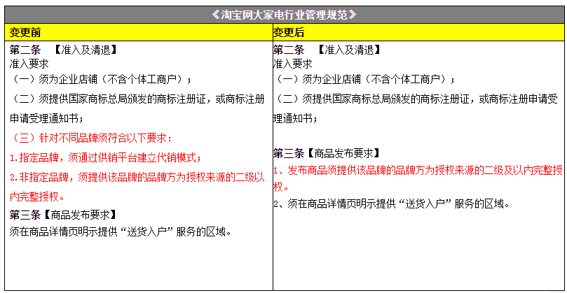 淘宝网为了让大家电行业商品更加丰富, 淘宝网拟调整《淘宝网大家电行业管理规范》。