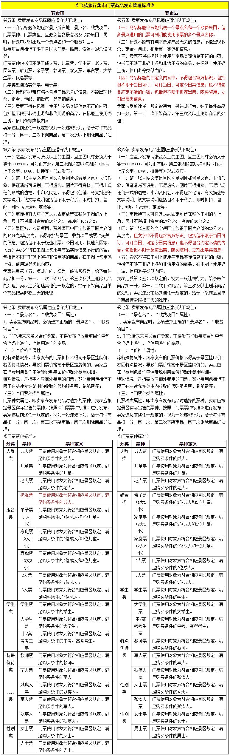 为持续提升消费者购物体验,维护健康的市场秩序,飞猪将修订《飞猪旅行集市门票商品发布管理标准》。