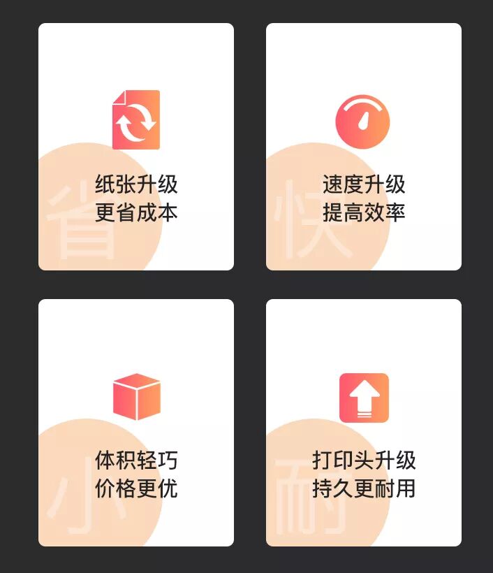 KM-166的打印速度最大可达到150mm/s,打印3寸面单更节省时间。4大优势,可谓是 快、省、轻、耐。
