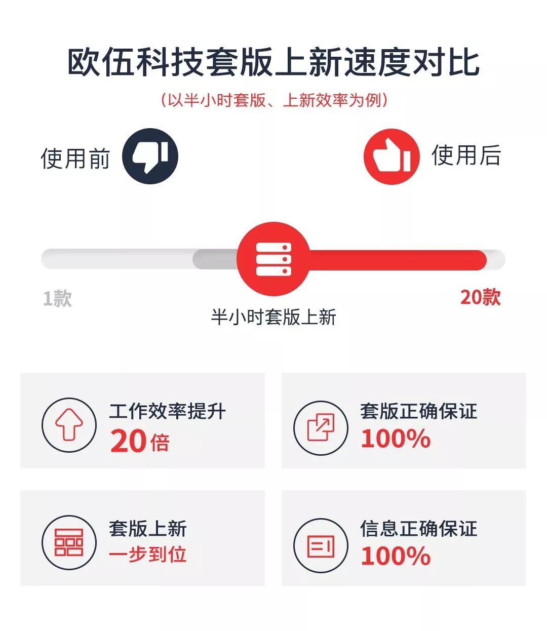 基于欧伍科技的业务需求,快麦详情机器人分别从“快速套版上新”和“优化工作链条”两个方面着手,促进其快速发展。