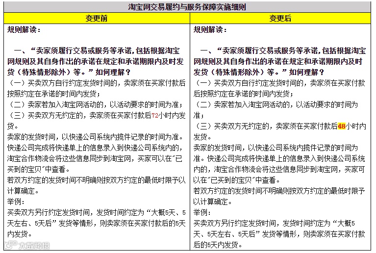 3《淘宝网交易履约与服务保障实施细则》变更