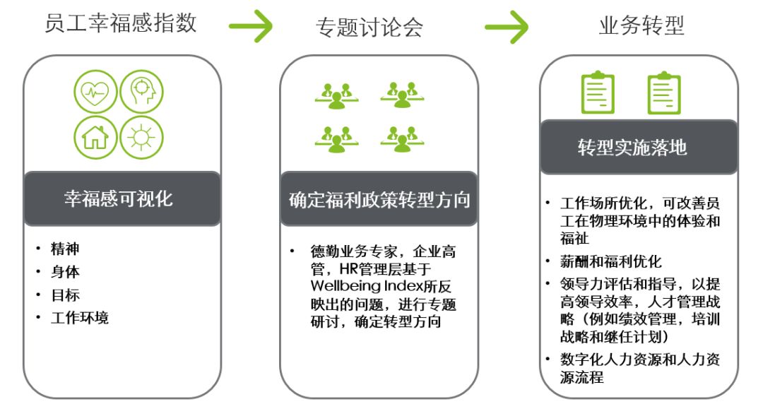 以期通过改善和提高员工的幸福感体验驱动工作效率,帮助企业招聘和留用最优秀的人才,提升企业声誉和品牌。