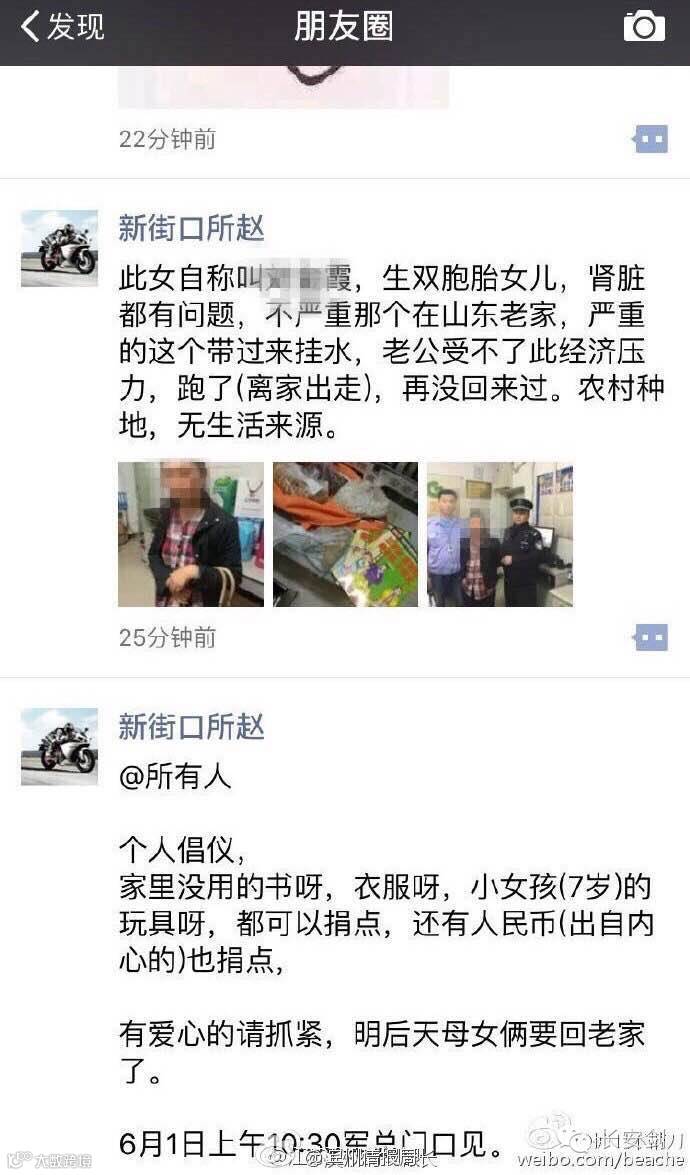 因为触动太大,潘警官的心情仍然难以平复,就在自己的朋友圈和战友群发了当时出警的情况,“想能不能帮助到这对母女”。