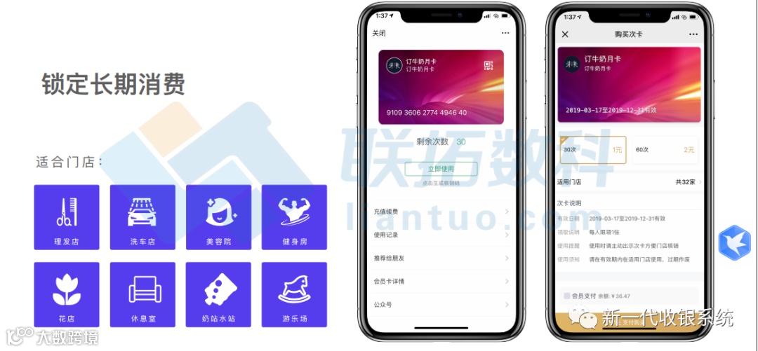 用户消费有积分,积分可以兑换本店代金券,商品券,礼品券。也可以用于异业合作,推周边理发店券、洗车店券,互相导流。