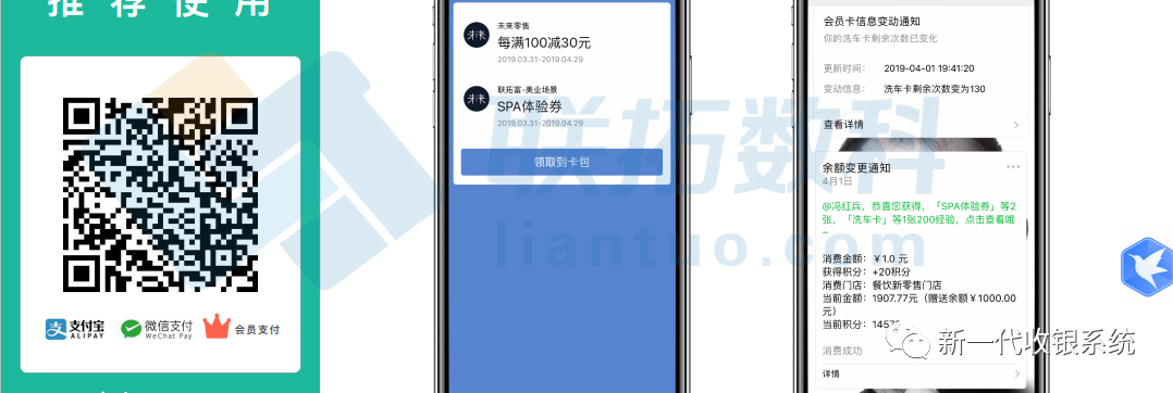 从收银系统、到电子会员、商城外卖、企业钱包结算清算能力,助力门店完成数字化升级,构建私域流量品牌资产,用加盟连锁的资金清能力实现加盟店的快速拓张