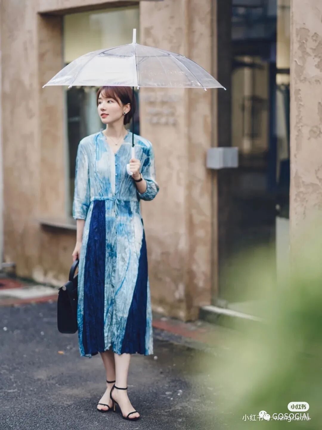 桑蚕丝连衣裙、舒适的缎面衬衫、清新的波点长裙,这些简简单单的穿搭要素构成了一个轻松自持的形象。这样的穿搭风格也展现出了双木琳不受拘束的一面。