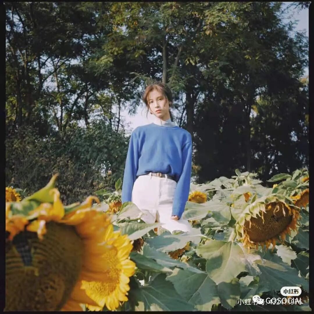 最早关注到小天狼星是因为她的一组OOTD,身穿宝蓝色毛衣与白色灯芯绒长裤立于向日葵花海中,美好静谧。