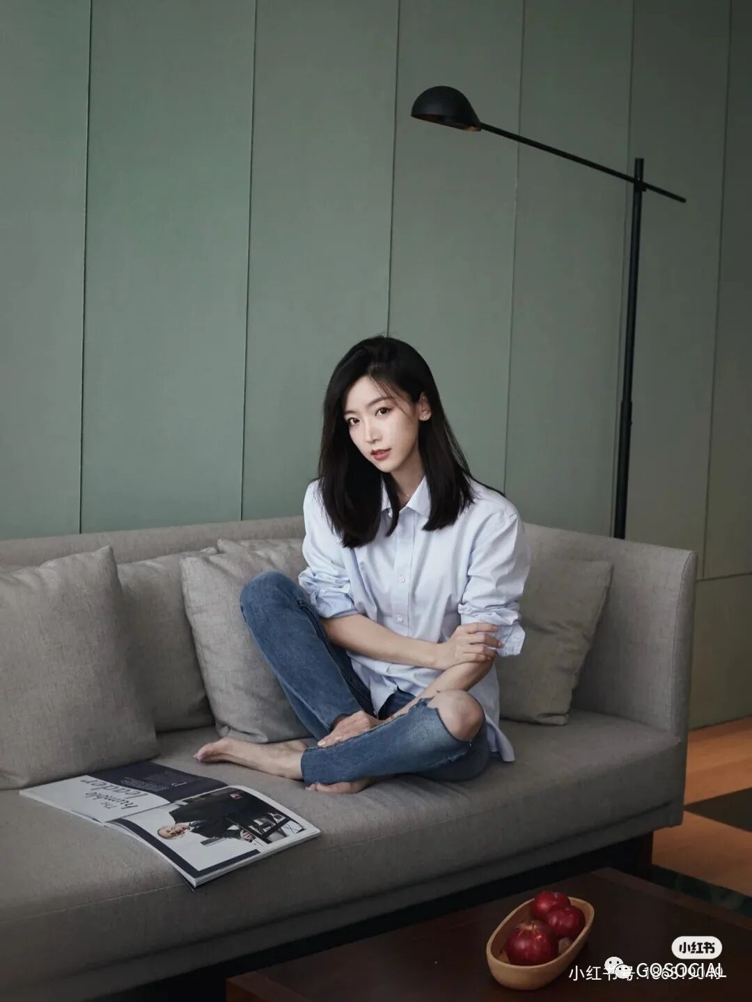 她偏爱随性帅气的穿衣风格。以宽松衬衫和牛仔裤等基础款单品为主,单品的利用率很高,一件衬衫可以搭配出多种风格。