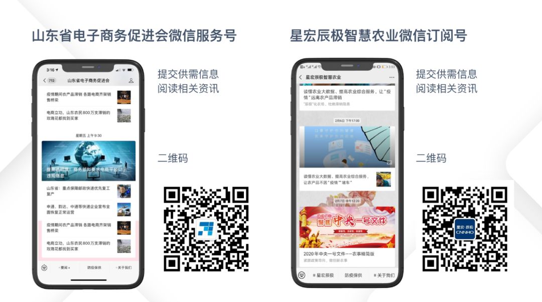 据了解,有需要的农产品生产销售主体,均可访问山东省商务厅官网、山东省电子商务公共服务平台网站、山东省电子商务促进会网站,或通过通过手机关注山东省电子商务促进会微信服务号、星宏辰极智慧农业微信订阅号,通过“产销对接”入口提报并查看产销信息,接收信息汇总情况。
