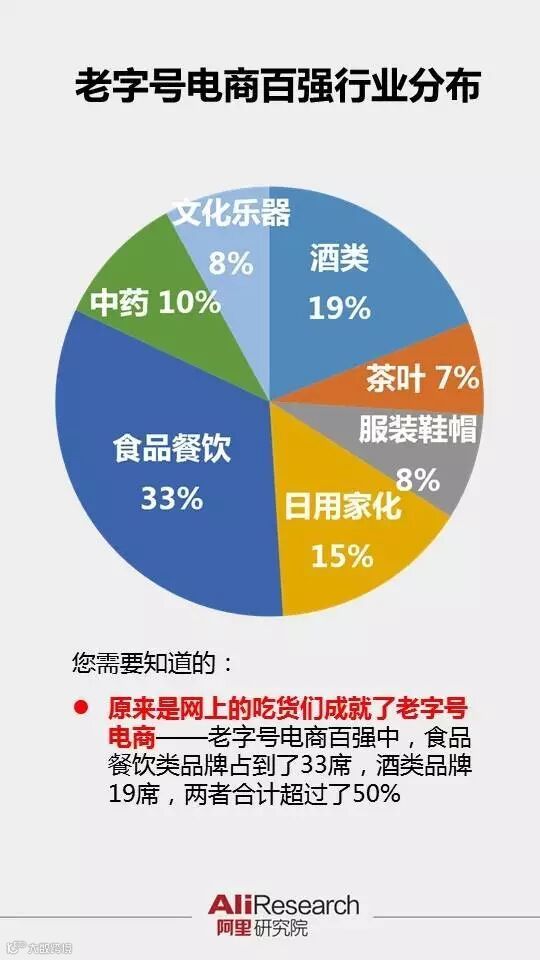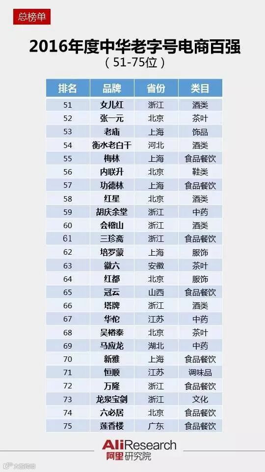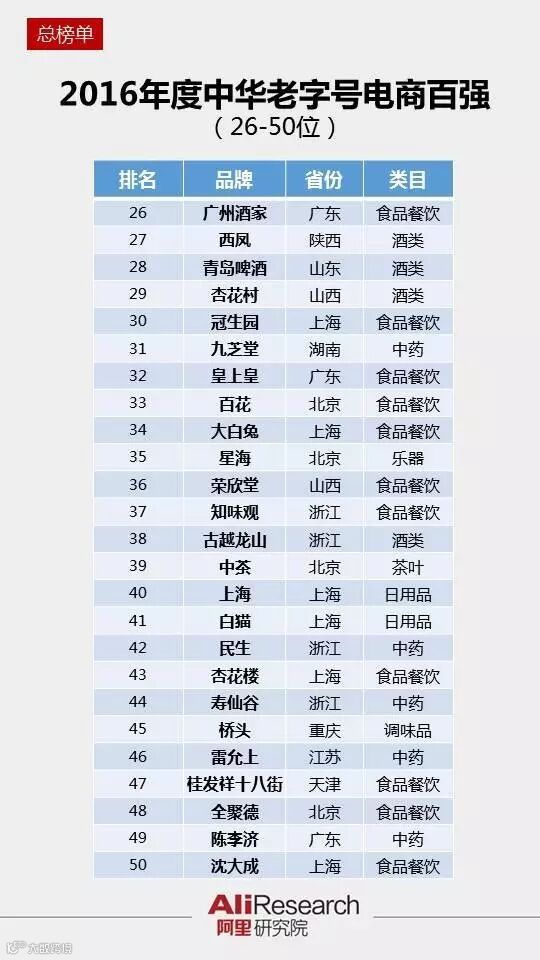 近日,阿里研究院基于其零售平台数据发布了“2016年度中华老字号电商百强排行榜”,恒源祥、回力和茅台名列老字号电商排行榜的前三甲。其他入围前十位的还包括永久、五粮液、三枪、凤凰、红双喜、云南白药和洋河。