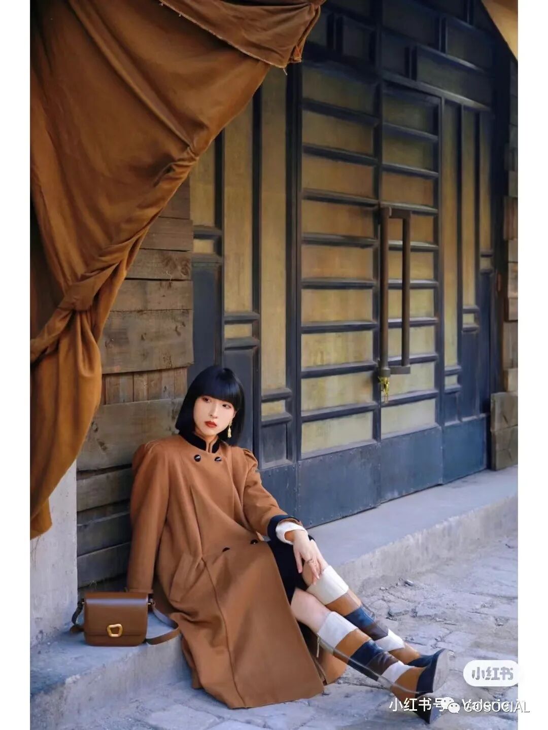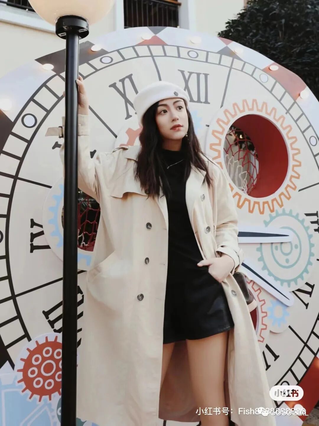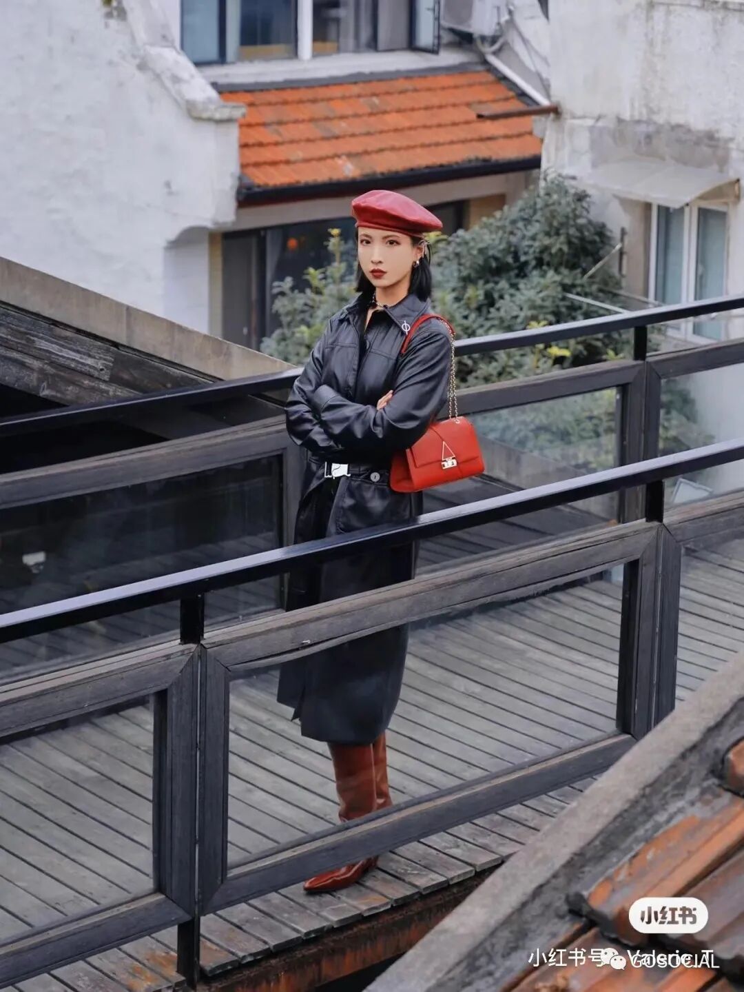 她也会根据景点的不同来选择搭配衣服。例如去探访魔都的天台园区,会选择黑色皮风衣搭配及膝长靴。就像冰冷的都市建筑,冷静又克制。