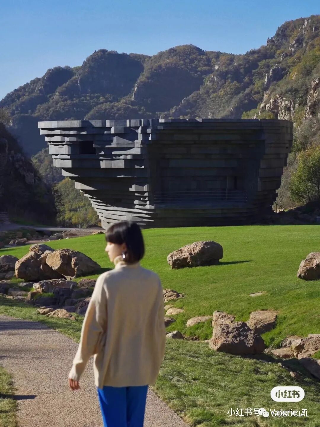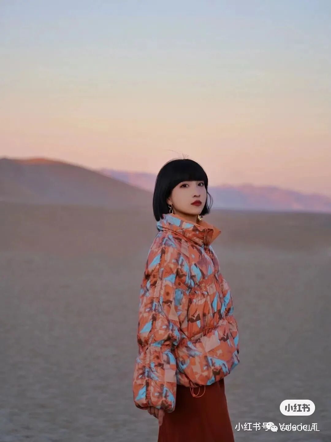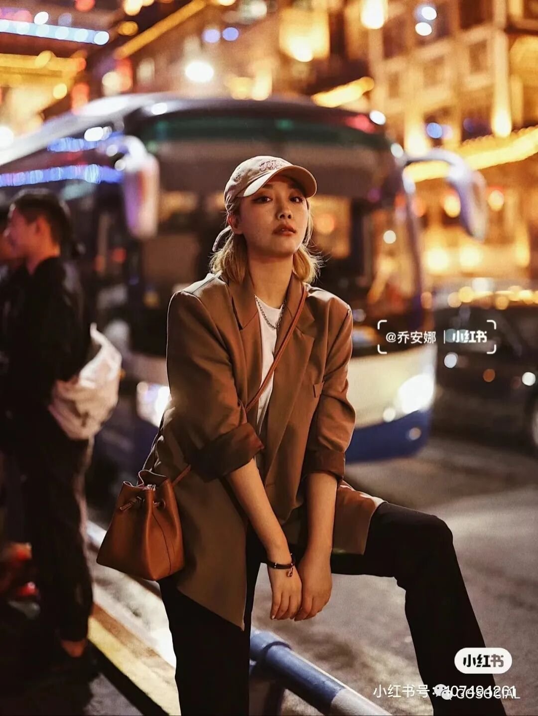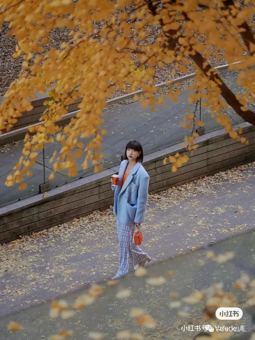 她也会根据景点的不同来选择搭配衣服。例如去探访魔都的天台园区,会选择黑色皮风衣搭配及膝长靴。就像冰冷的都市建筑,冷静又克制。
