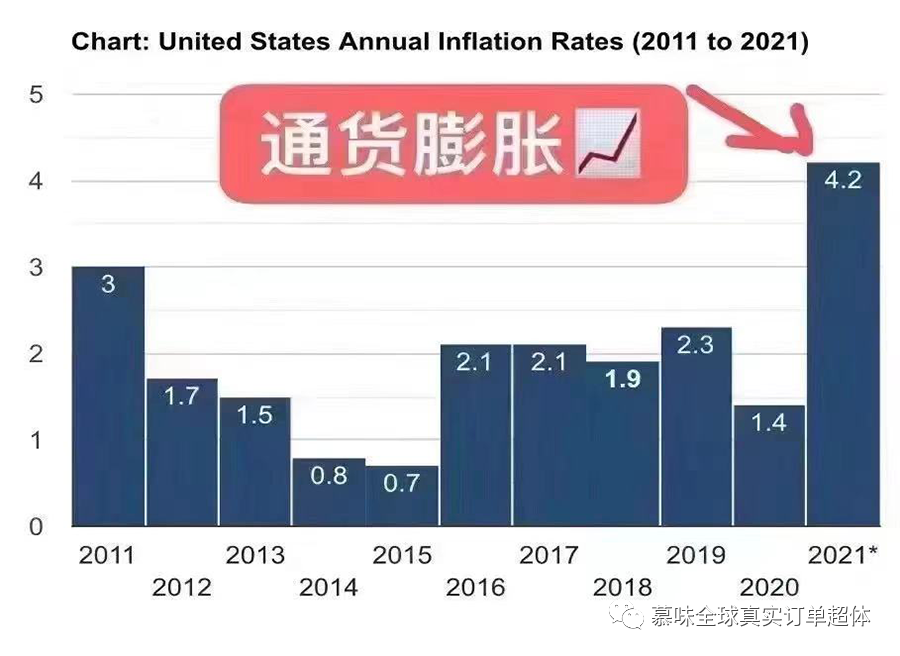 首先我们要看到,从今年3月份开始,美国的物价就开始上涨,4月份的通胀率已经达到了4.2%。推特上一位美国人发的帖子,能反映出美国目前的基层实际情况:“大家注意到食物涨价了吗?我逛Target的时候发现,4个玉米居然要4.49美元了!还有我逛Costco的时候,发现过去我花12-14美元买的三文鱼,现在要19到21美元了!”