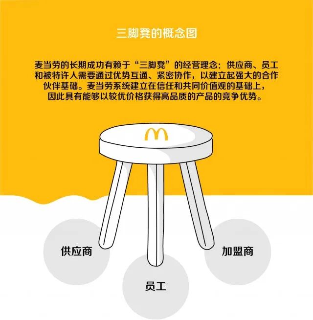 麦当劳倡导的“三脚凳”文化中,供应商、经营者和麦当劳本身,都是不可或缺的一部分。在共享的价值观指引下,三方实现了优势互补与紧密合作。这种长期且深入的合作关系,为麦当劳带来了持续稳定的高质量产品供应,有效抵御了行业风险,并确保了采购量和价格的稳定性。