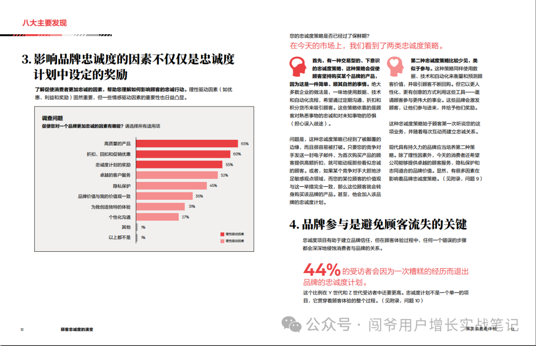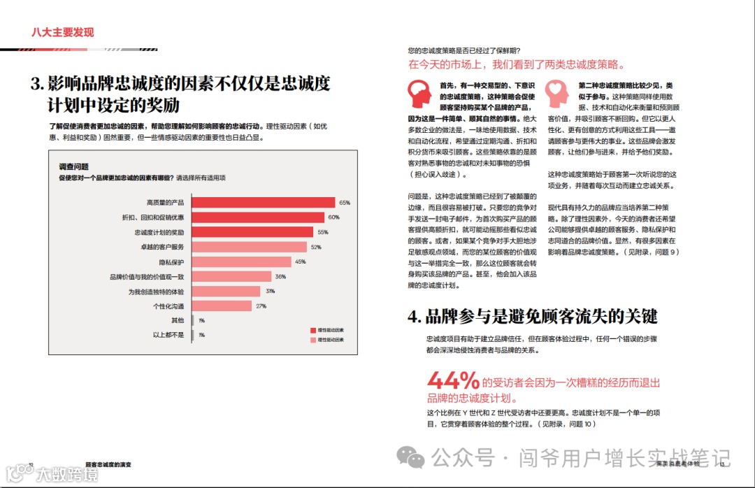 3. 品牌参与度的关键作用:一次负面体验足以让44%的顾客放弃忠诚计划,尤其在年轻消费者中这一趋势更为明显。