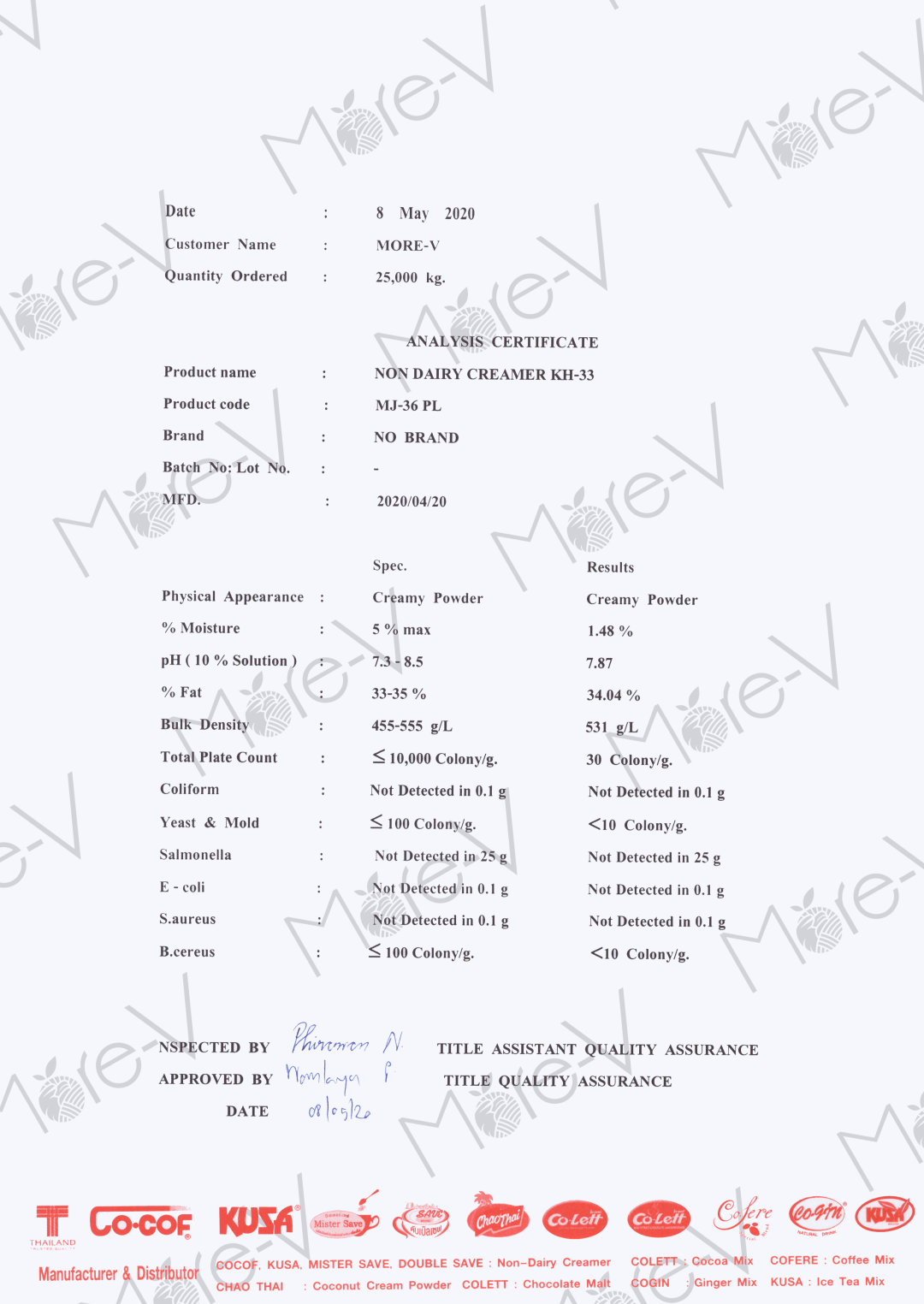 △ 质量检测报告,COA(Certificate of Analysis)是产品出售前的质量检查,是鉴定产品质量达标的书面证明。
