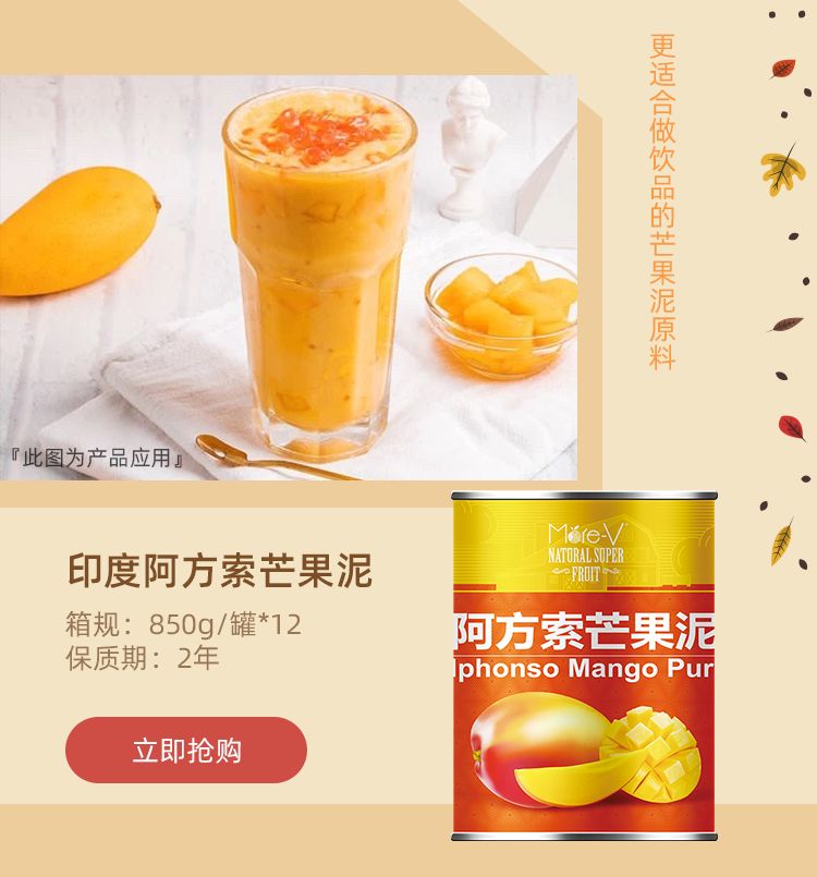 More-V芒果果肉制成芒果泥通过罐装来保存,这不仅可以延长保质期,而且还可以轻松地将产品从海洋运输到世界各地区。从而解决了与运输整个水果相关的大多数问题,罐装芒果不那么稀烂,更多的是光滑,深金黄色香气浓郁,带有成熟芒果的香气,味道甜美,就像新鲜水果一样,但没有肉质。