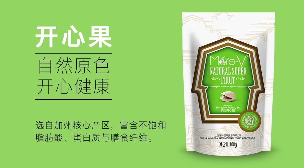 More-V ABC果干坚果系列的包装由知名设计师重金打造,包装上面以农场为主视觉,象征More-V的产品均来自国外天然农场,无添加更健康。