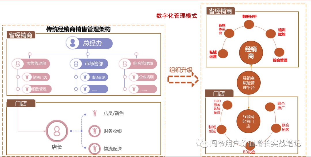 组织由管理职能向数字化赋能进行转变,基于数据作为数字化经营组织的抓手和决策依据, 促进各业务部门高效协同,建立高效敏捷的互联网经营工作方式。