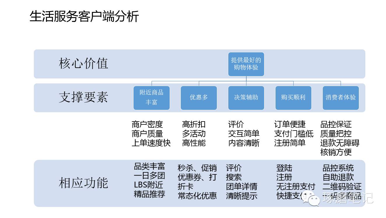 以下基于用户在移动条件下的生活服务消费场景,对生活服务客户端的核心功能拆解