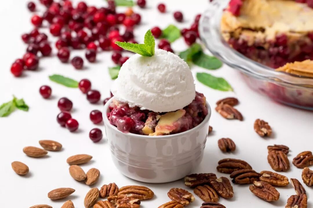 在酸奶、冰激凌、手工奶酪中加入蔓越莓,美味又健康。主要用到的是蔓越莓干、果汁和冻果。